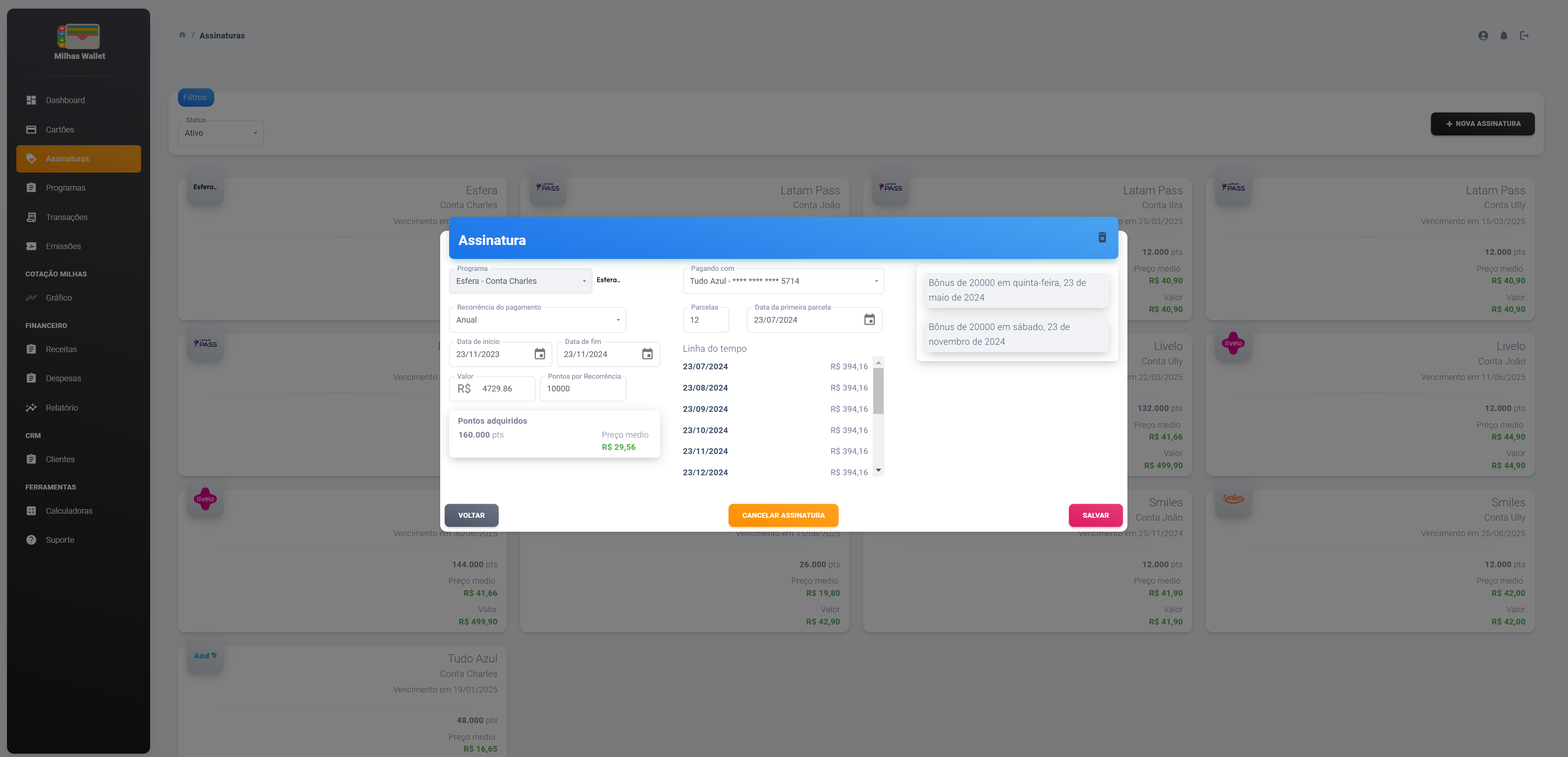 Com uma interface simples você cadastra a assinatura de um programa, controlando o pagamento, bônus que irá receber e qual o CPM